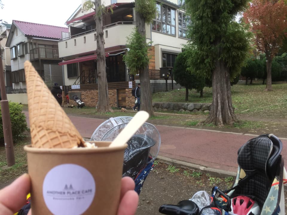 10月にオープンした沼に面したカフェでジェラートをテイクアウトして食べて、公園で遊んで帰ってきました。
